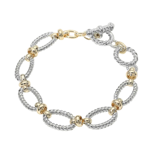 14K Gold Plated Two Tone Textured Oval Link Toggle Necklace