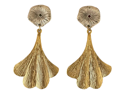 Two-Tone Gold Earrings - Handmade Dangle Fan-Shaped Gold Plated Jewelry