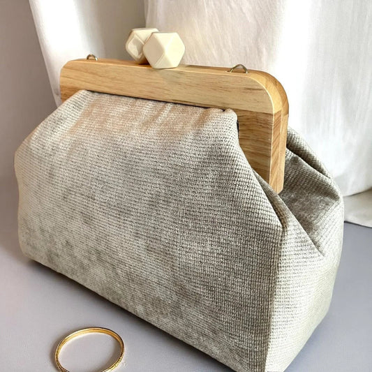 Velvet Clutch Bag - Handmade Wooden Frame Purse With Soft Textured Fabric