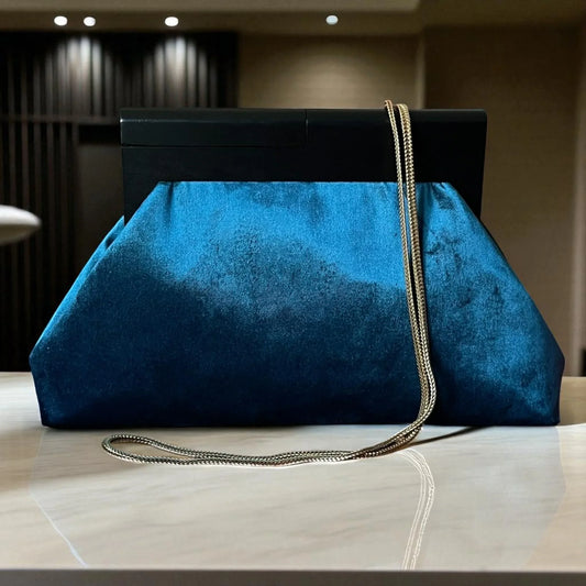 Turquoise Velvet Clutch | Oversized Handmade Suede Bag with Black Wooden Frame