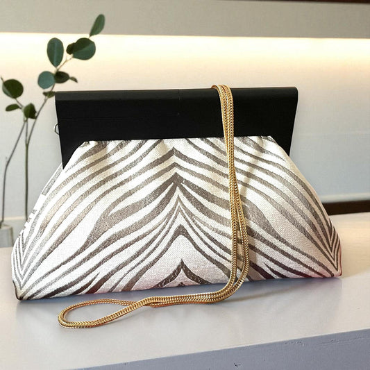 Zebra Print Clutch - Oversized Bold Animal Print Purse with Modern Black Frame