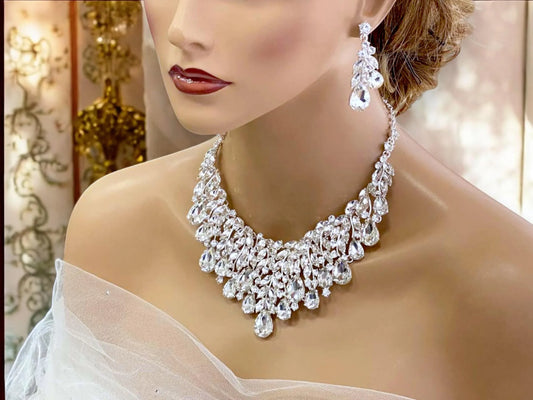 Chunky Crystal Necklace | Formal Event Jewelry Set With Adjustable Clasp & Glamorous Bib Design