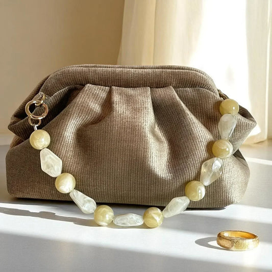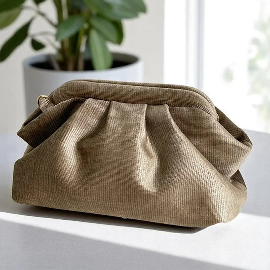 Textured Brown Clutch – Handmade Soft Fabric Bag | Minimalist Pleated Purse