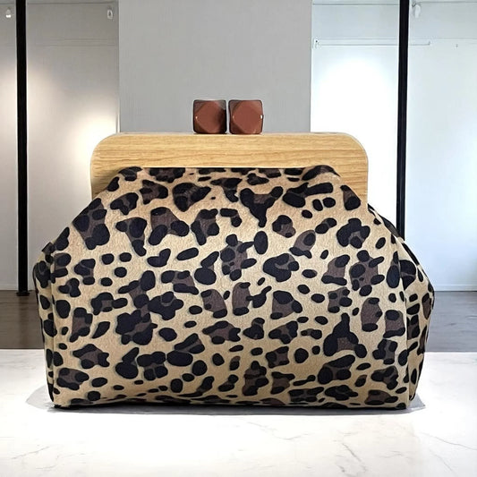 Leopard Print Clutch | Handmade Statement Bag With Wooden Frame | Bold Fashion Accessory