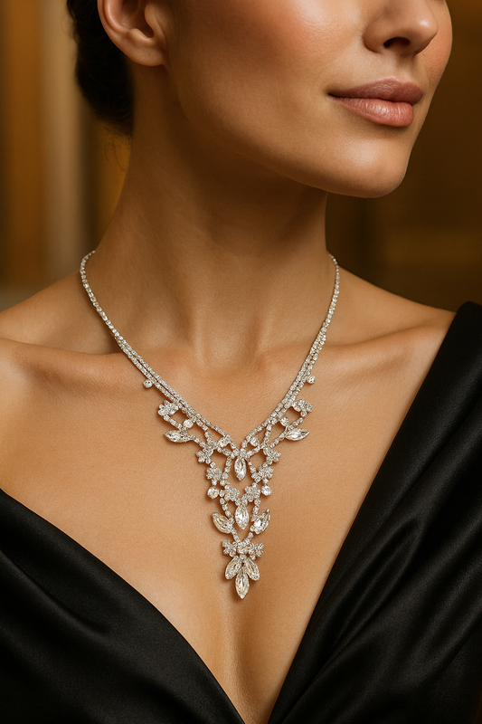 Luxury Crystal Floral Drop Necklace โ Bridal & Evening Statement Jewelry