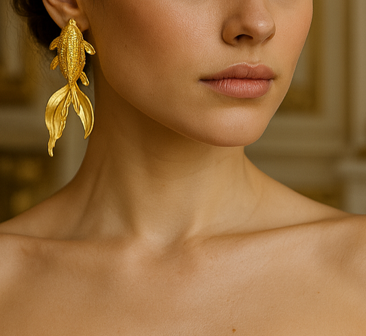 Gold Plated Koi Fish Statement Earrings, Made in Turkiye