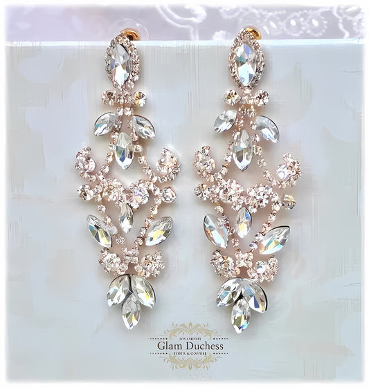 Bridal Chandelier Earrings - Silver Rose Gold Victorian Drop Earrings for Bridesmaids