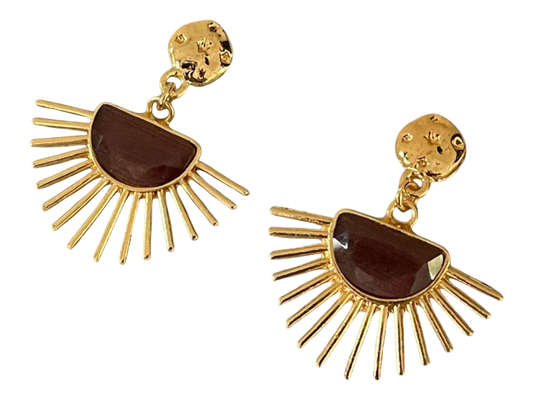 Handmade 18k Gold Plated Cats Eye Drop Earrings - Boho Chic Artisan Jewelry, Handmade In Turkey