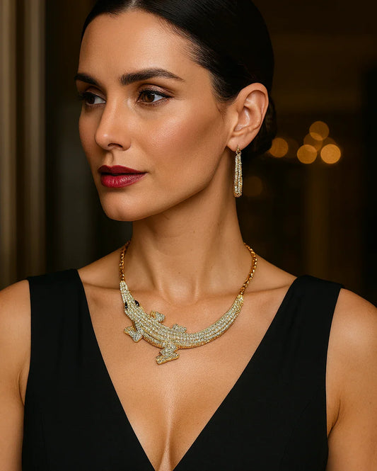 Crystal Crocodile Necklace – Luxury Statement Pendant on Silver Chain