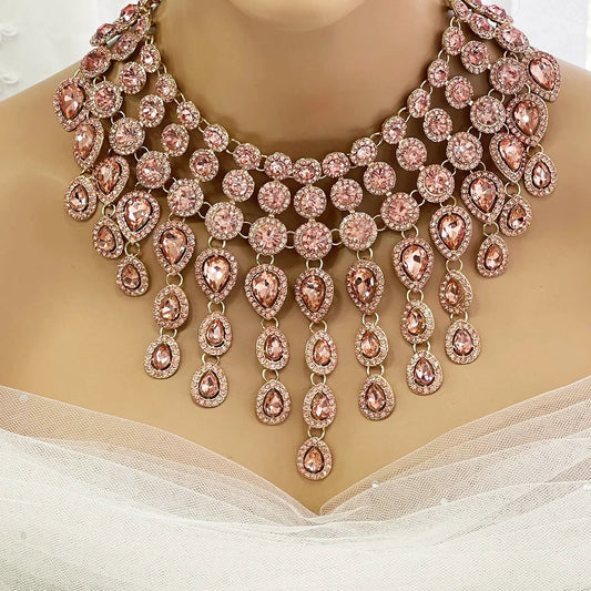 Rhinestone Choker Necklace - Luxury Statement Jewelry Set with Long Drop Earrings