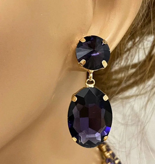Purple Gemstone Necklace – Luxury Statement Necklace Set with Teardrop Earrings