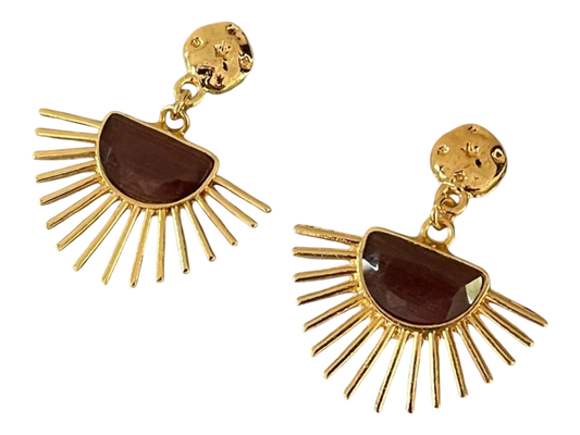 Gold Plated Cat's Eye Earrings – Handmade Drop Earrings | Boho Chic Statement Jewelry