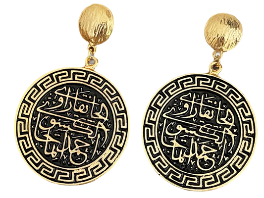 Gold Plated Earrings โ Handmade Turkish Calligraphy Medallion Coin Design