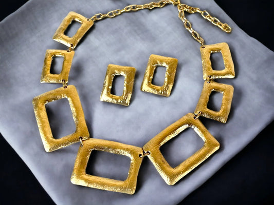Chunky Geometric Jewelry - Gold Plated Necklace & Bold Statement Earrings Set