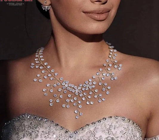 Crystal Floral Necklace – Luxury Bridal Statement Jewelry for Evening Events
