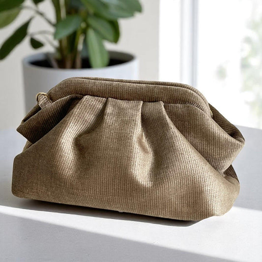 Textured Brown Clutch Purse | Handmade Neutral Folded Bag | Minimalist Soft Fabric Evening Bag | Elegant Everyday Accessory