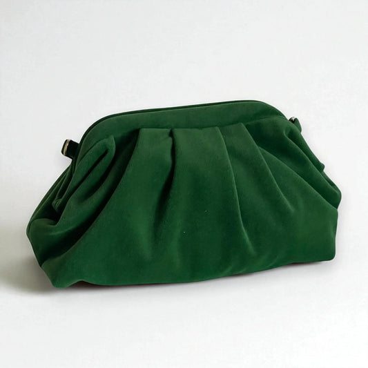 Emerald Velvet Clutch – Vintage Style Pleated Evening Bag | Soft Fabric Handbag