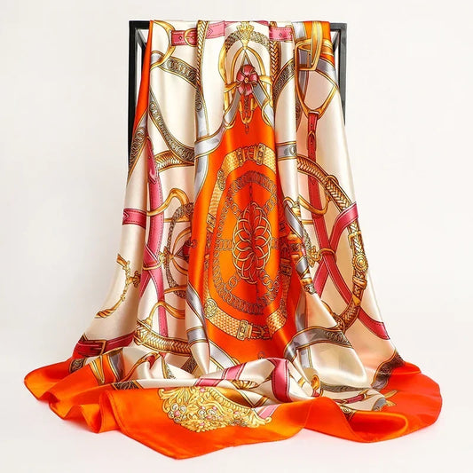 Silk Square Scarf - Big 90x90cm Satin Print Shawl for Women | Luxury Designer Hijab