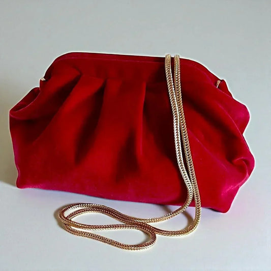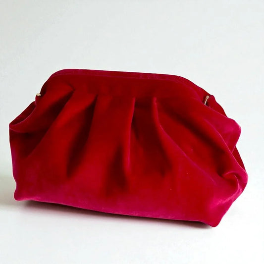 Red Velvet Clutch | Pleated Velvet Clutch With Hidden Clasp Closure - Elegant Formal Purse