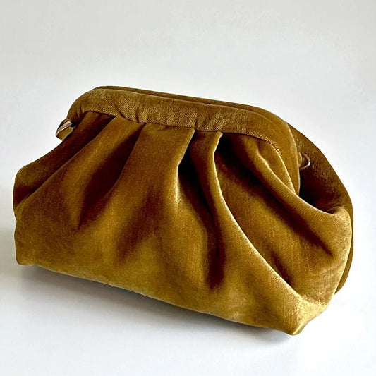Gold Velvet Clutch | Elegant Soft Pleated Evening Purse – Vintage Party Bag