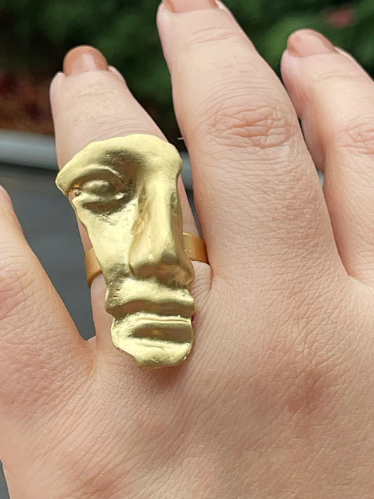 Gold Plated Ring – Adjustable Abstract Face Statement Ring With Matte Gold Finish