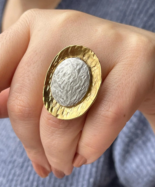 Gold Plated Chunky Ring – Adjustable Textured Statement Jewelry, Handmade In Turkey