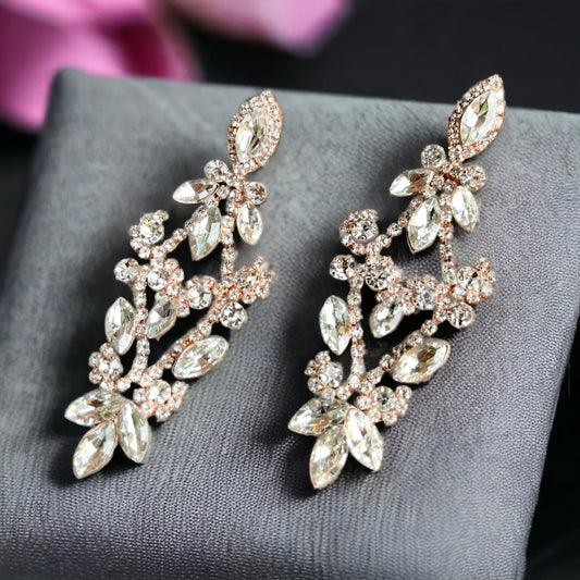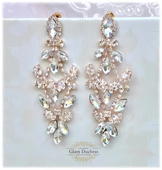 Bridal Chandelier Earrings - Victorian Drop Rhinestone Pave Silver & Rose Gold