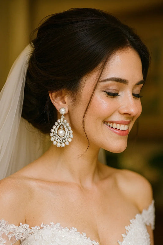 Pearl Chandelier Earrings – Elegant Bridal Crystal Drop Earrings, Lightweight Wedding Jewelry