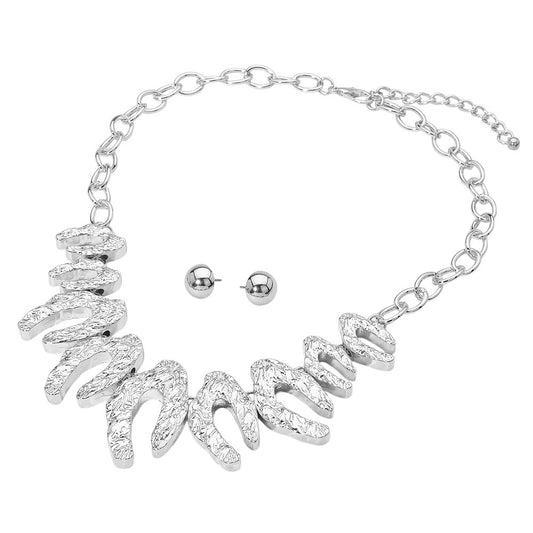 Textured Abstract Metal Object Beaded Statement Necklace Earrings Jewelry Set