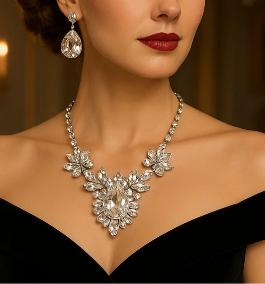 Crystal Statement Necklace – Luxury Wedding Jewelry Set With Adjustable Drop Earrings