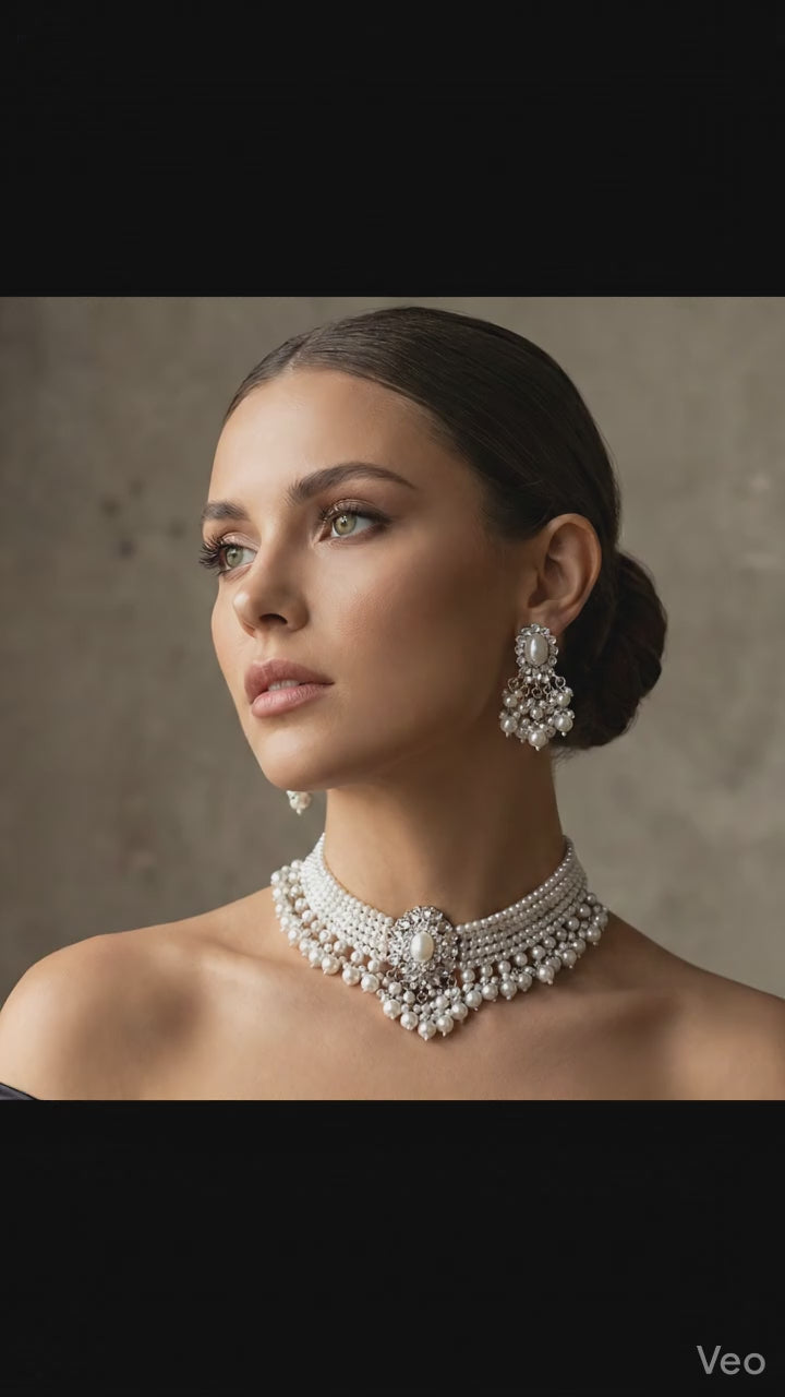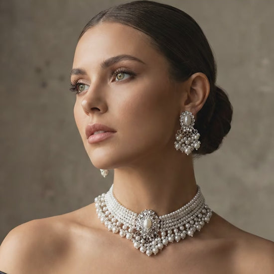 Pearl Choker Necklace With Statement Earrings Set – Elegant Bridal Jewelry